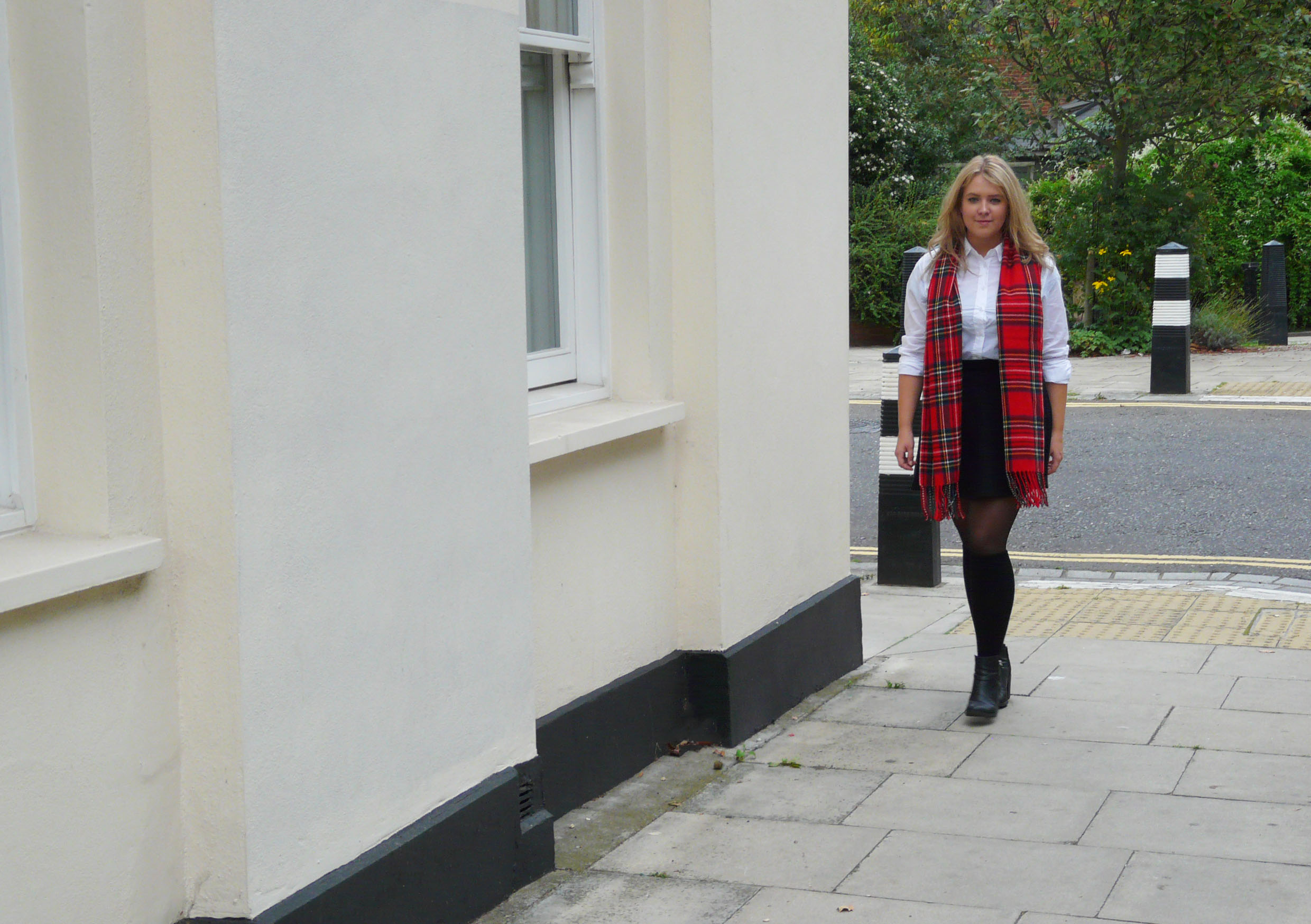 De Tweede outfit is geschikt voor de dagen waarop het te warm is om al een trui te dragen. Mijn sjaal is van ‘New Look’.