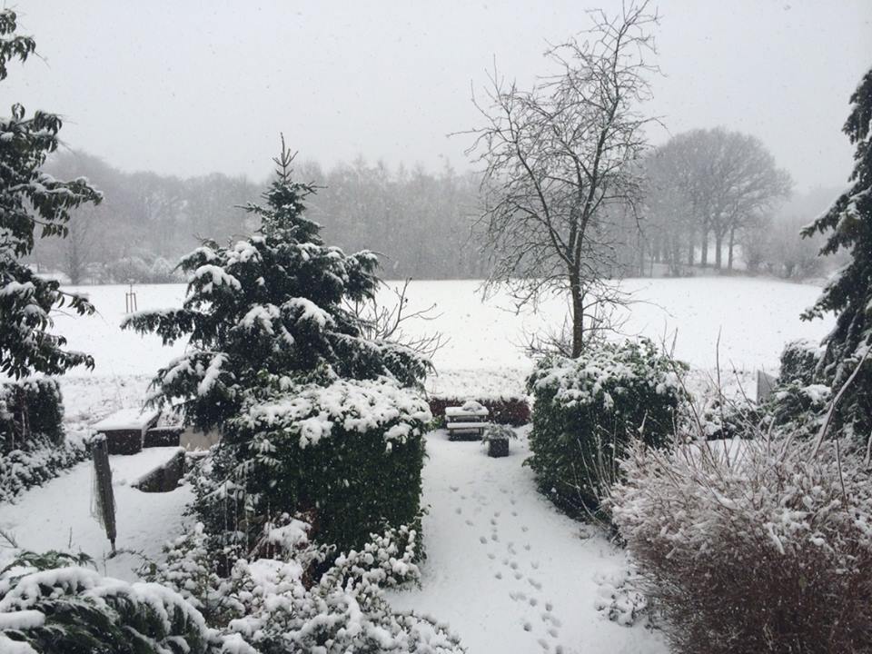 Toen ik zaterdag wakker werd, nadat mijn moeder het raam boven mijn bed opende en er een lading sneeuw mijn bed in kwam, zag ik dit. Voor ongeveer een uurtje of twee vond ik het mooi maar toen had ik het eigenlijk al wel weer gehad met de sneeuw.