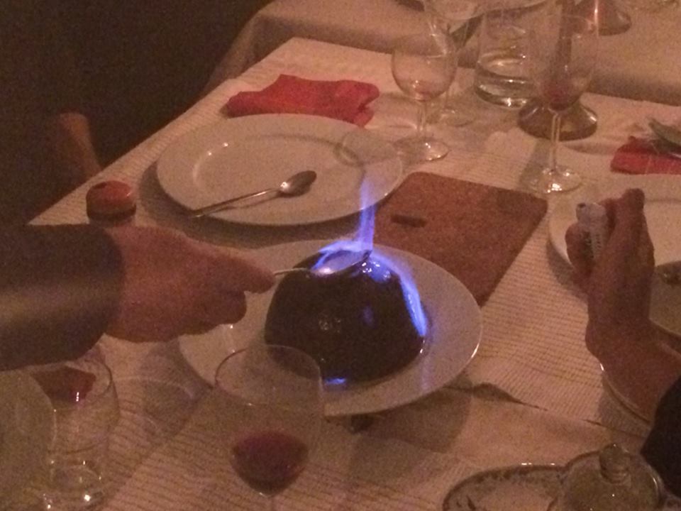 Hierboven zie je de Christmas pudding on fire, dit is een typisch engels toetje voor de kerstdagen. Hoe leuk ziet dat er uit!?